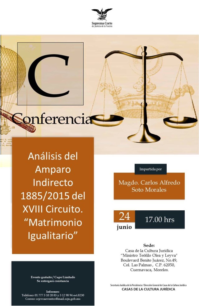 El próximo 24 de junio estaré en la Casa de la Cultura Jurídica de Cuernavaca, platicando sobre matrimonio igualitario.